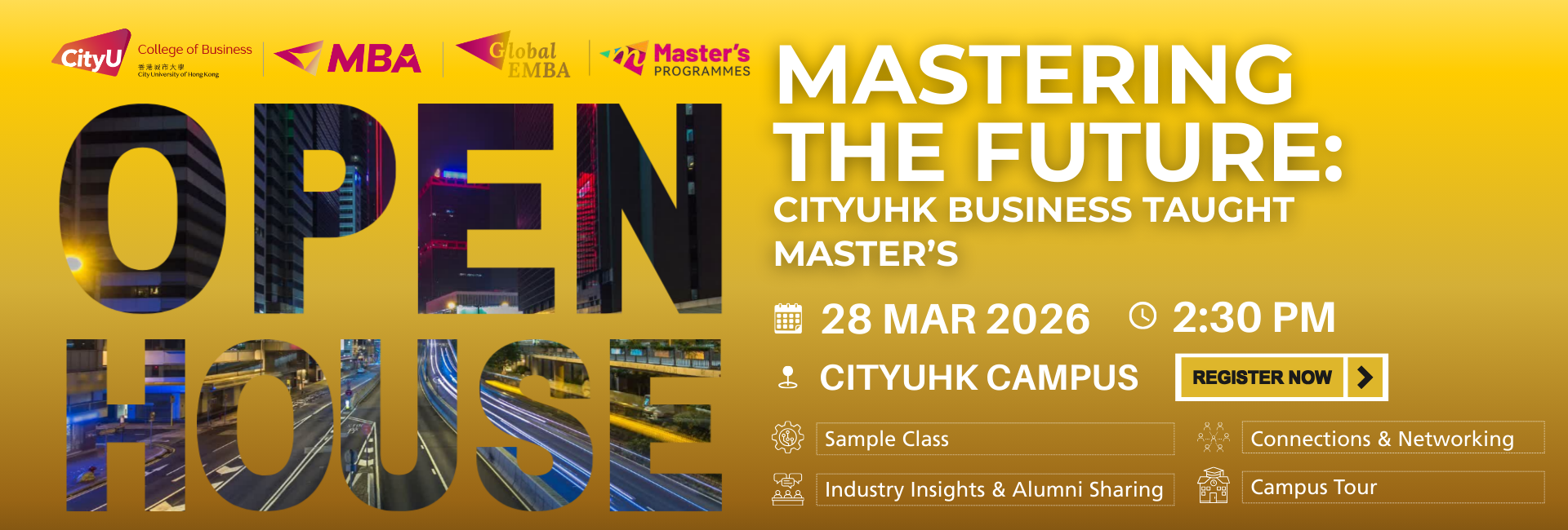Are you ready to redefine your career trajectory? Join us for an immersive afternoon at the City University of Hong Kong (CityUHK) Business Taught Master's Open House.