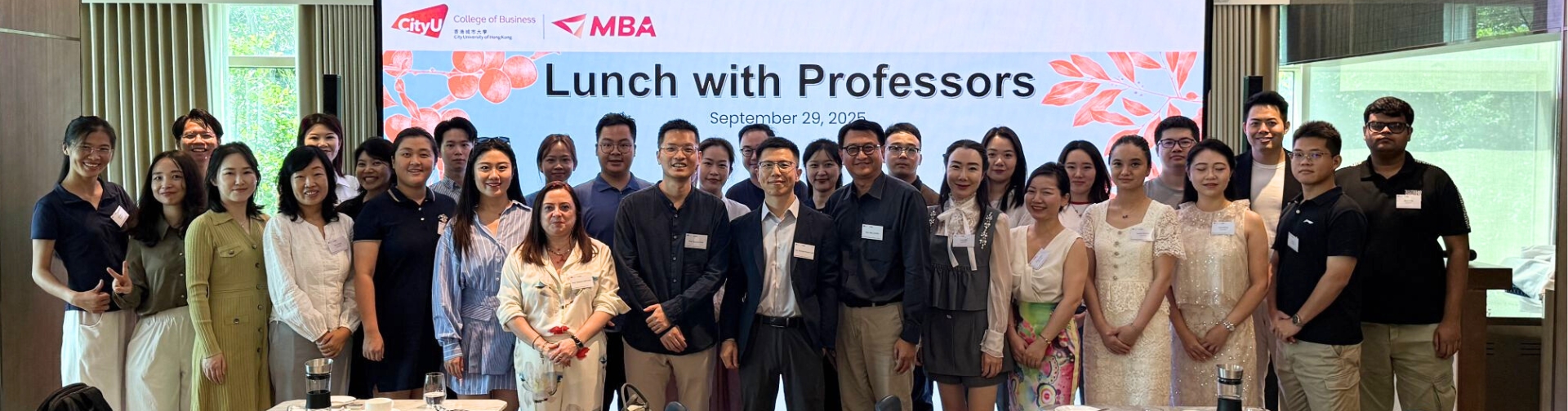 The Faculty Lounge was filled with sunshine and spirited conversation as the new 2025 cohort of the City University of Hong Kong (CityUHK) MBA programme enjoyed their inaugural "Lunch with Professors" on 29 September 2025.