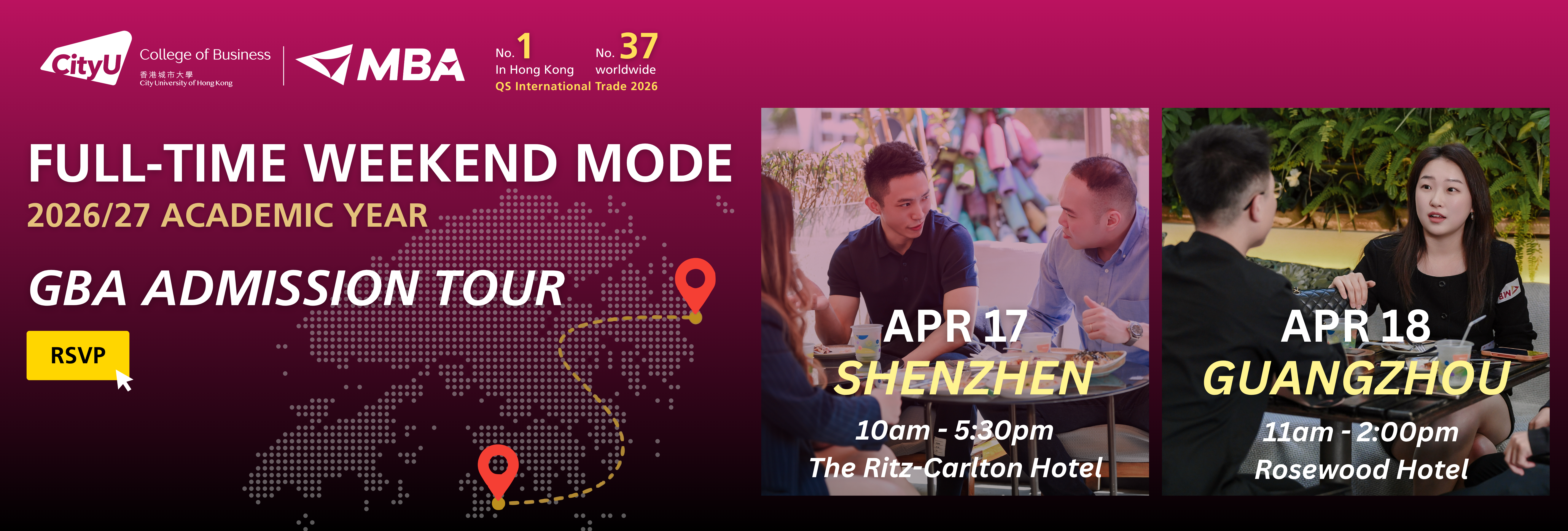 Are you ready to elevate your career without hitting pause on your professional momentum? The CityuHK MBA team is coming to the Greater Bay Area!